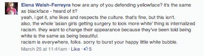 Les personnes asiatiques ne sont peut-être pas arrêtées et fouillées ou suivies dans les grands magasins aussi souvent que les personnes noires, mais cela ne donne pas le droit aux gens de perpétuer des stéréotypes réducteurs à leur sujet. Les canulars téléphoniques utilisant des voix asiatiques, le fait de tirer sur vos yeux pour les faire « paraître plus asiatiques », et ces types de tutoriels de maquillage « How to Look » doivent cesser.