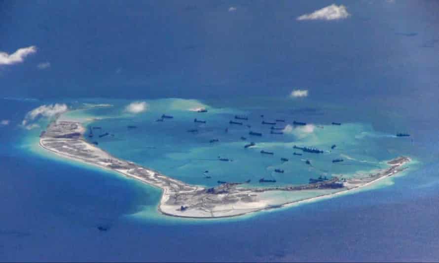 - Horgászhajók a malajziai George Town partjainál; kínai kotróhajók a Spratly-szigetekhez tartozó Mischief Reef körüli vizeken; Teherautók homokot szállítanak a Johor Bahru-i Forest City fejlesztésénél, Malajzia