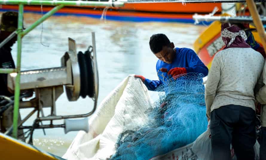 Megfog egy csillogó új fehér hálót a parton heverő mintegy 40 sérült háló egyike mellett, Din arra panaszkodik, hogy a közeli rekultivációs területről származó iszap megöli a helyi tengeri élővilágot, és helyrehozhatatlan károkat okoz a halászfelszerelésükben.